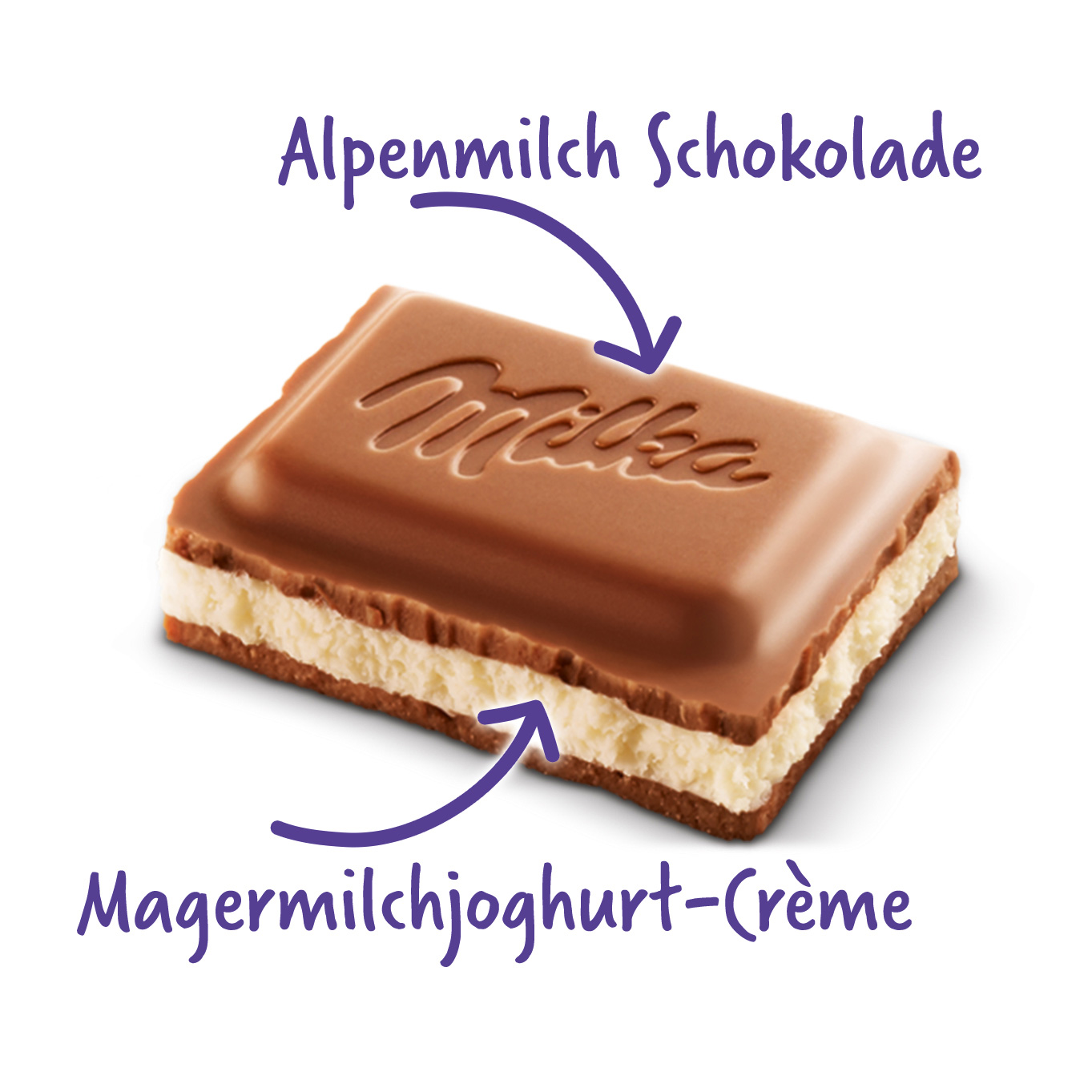 Milka Joghurt ist der zartschmelzende Schokoladengenuss aus Alpenmilch Schokolade aus 100% Alpenmilch mit crèmiger Joghurt-Füllung.